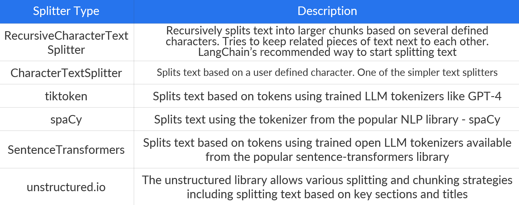 You can explore and experiment with various chunking strategies in the given table: