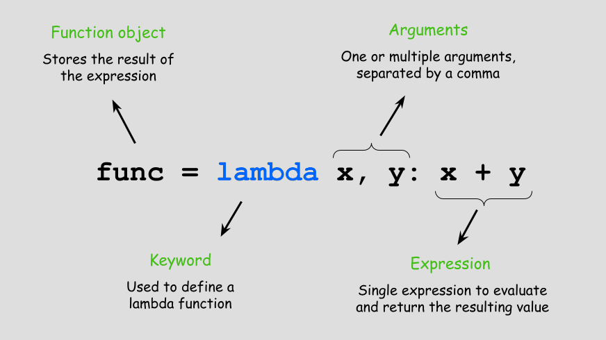 Lambda functions do not exist independently. The best approach to using them is with higher-order functions (HOF) like map, filter, and reduce.
